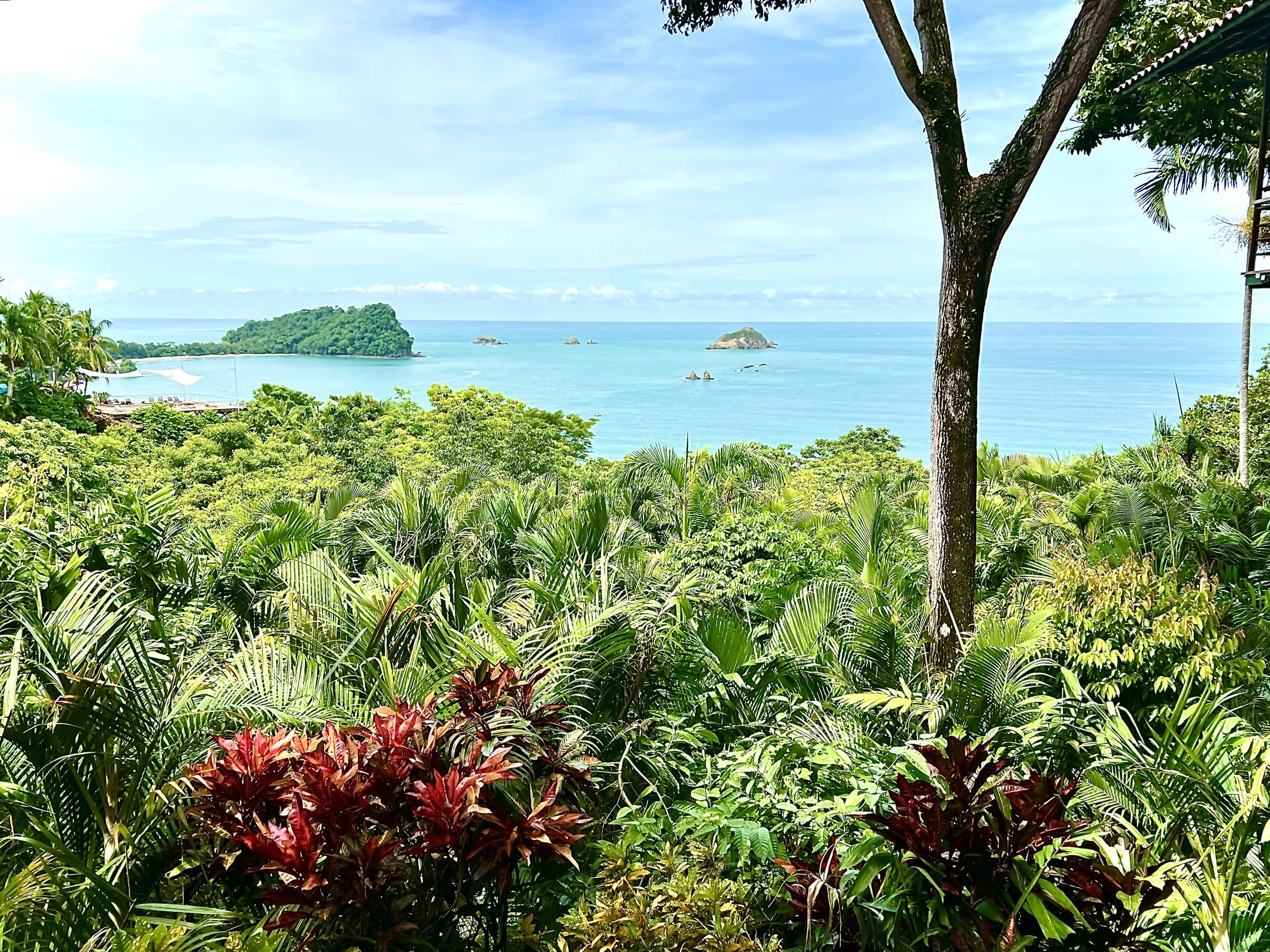 Imagine waking to howler monkeys calling across the canopy. Sipping coffee while scarlet macaws fly past in brilliant red flashes. Spotting sloths in nearby trees. Practicing morning movement on a rooftop terrace with panoramic Pacific views.